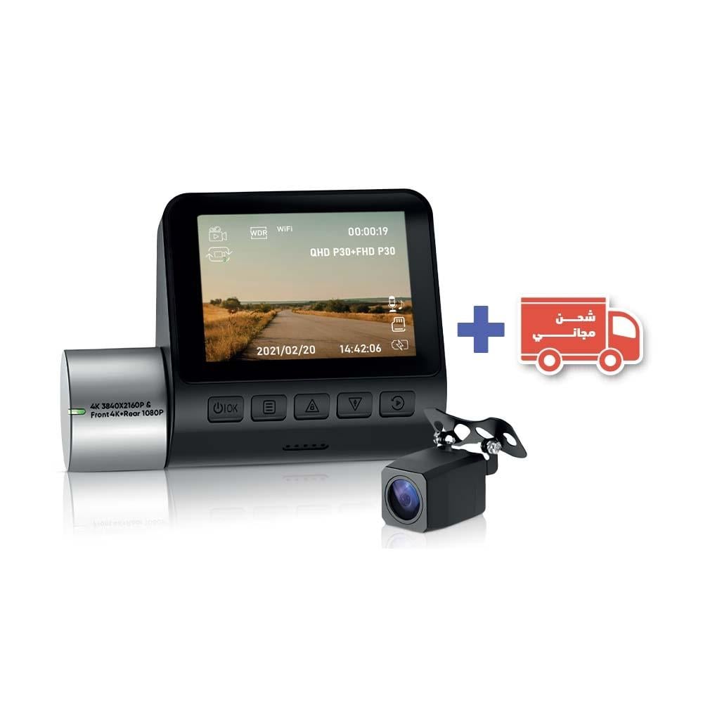 - كاميرا خلفية بدقة HD: توفر رؤية دقيقة للسيارات القادمة من الخلف وتسجيلاً واضحاً حتى في الظروف الصعبة.