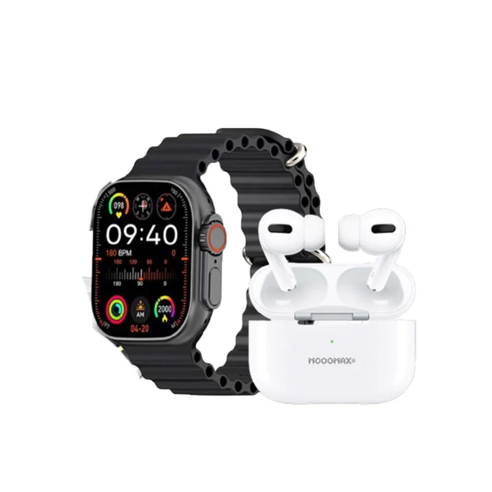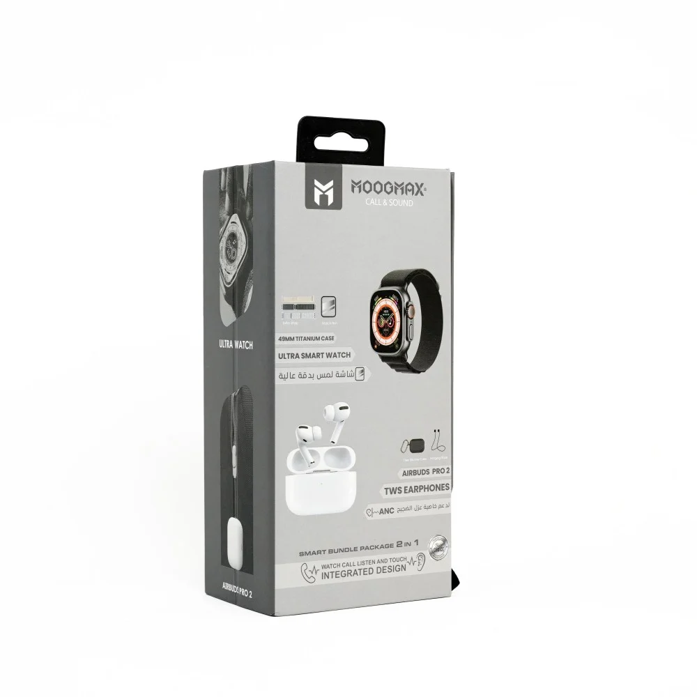 بكج موج ماكس ساعة الترا - أسود + ايربودز برو الجيل الثاني عازلة للضوضاء - ابيض