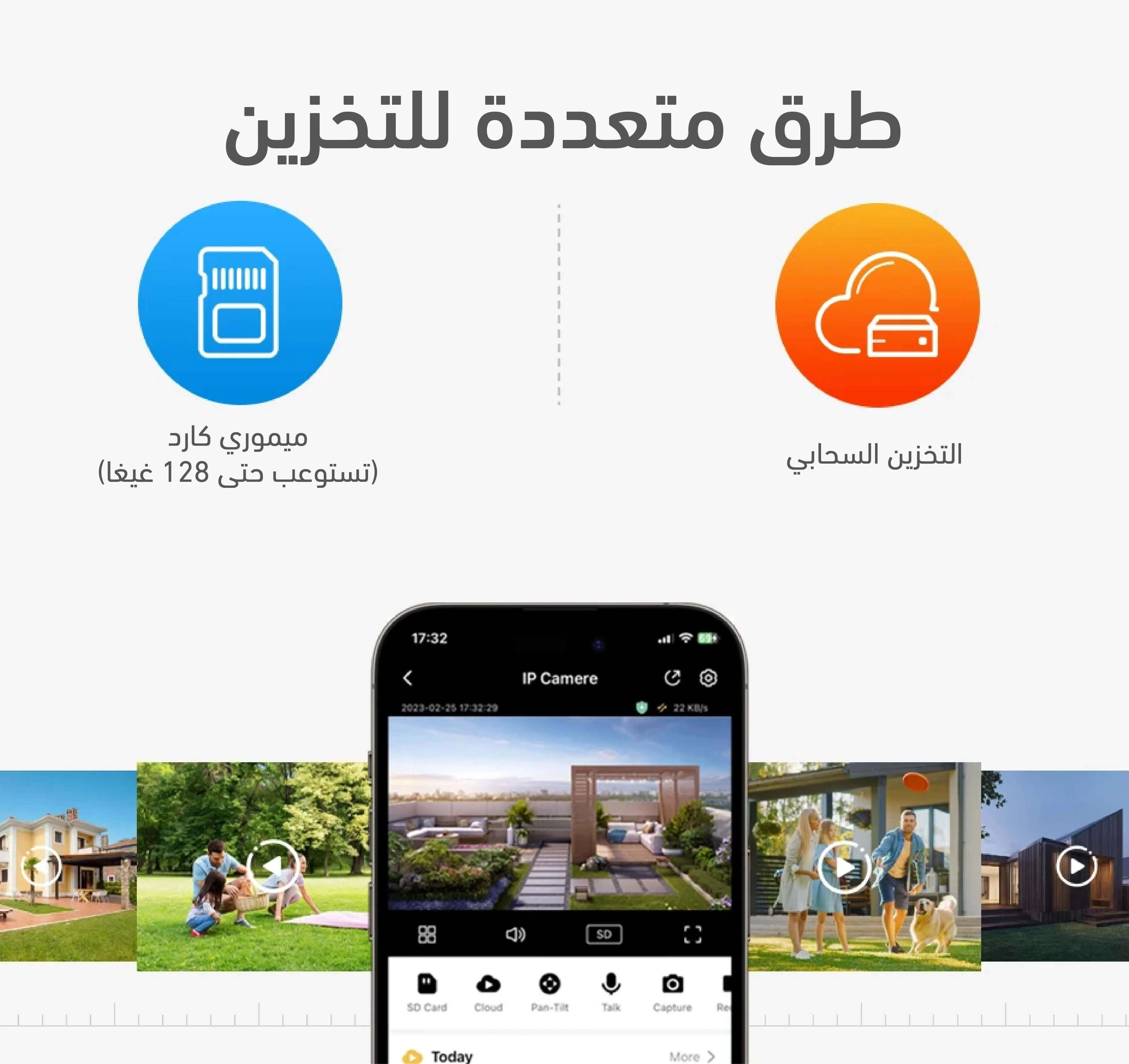 • توافق مع الأجهزة الذكية: يمكن استخدام تطبيق سهل الاستخدام على أجهزة الآيفون والأندرويد للوصول إلى الكاميرا ومشاركة الوصول مع الأهل والأصدقاء.