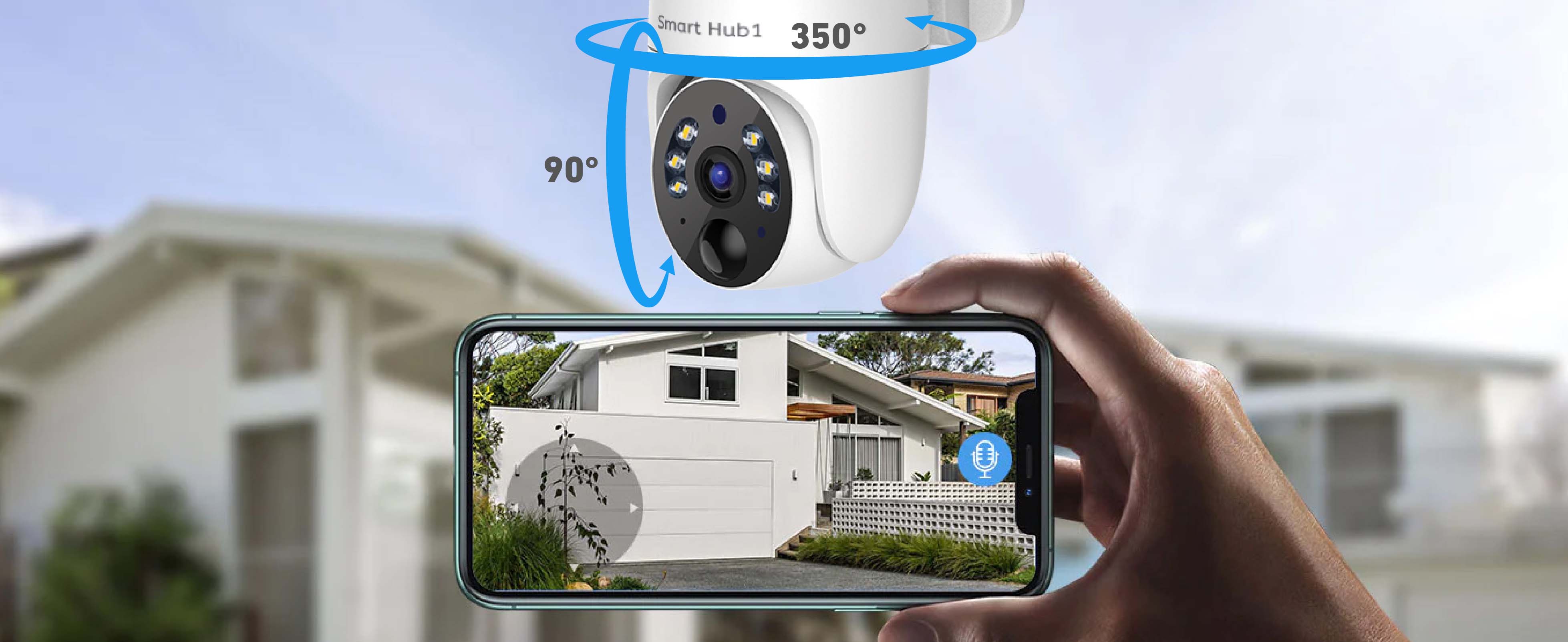 • كاميرا متحركة بزوايا واسعة: استمتع بمراقبة شاملة بفضل القدرة على الدوران 350° والإمالة 90°، لتغطي جميع الزوايا بدون ترك أي نقطة عمياء.