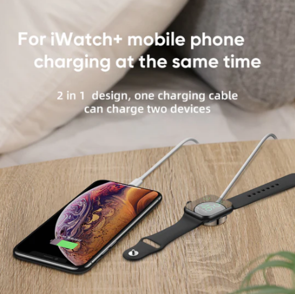 -كبل شحن مغناطيسي من جيروم هو شاحن عالي الجودة 2 في 1 حيث يمكنك شحن الهاتف والساعة الذكية في نفس الوقت
