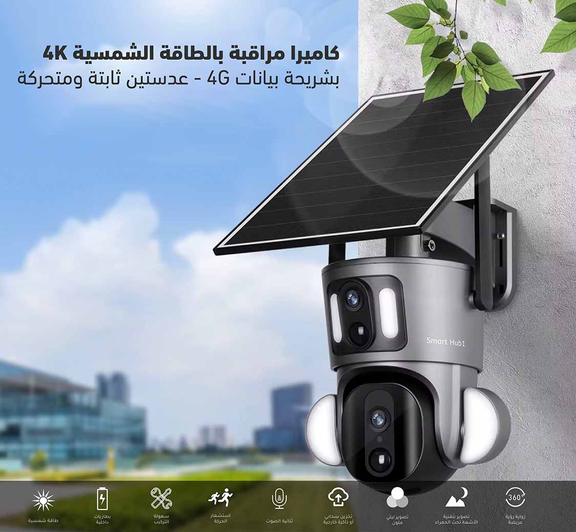 هل تخشى على منزلك أو مزرعتك أثناء غيابك؟ هل تريد متابعة كل تحرك مهما كنت بعيداً؟ كاميرا مراقبة خارجية بالطاقة الشمسية 4G من سمارت هب 1 تمنحك راحة البال التي تبحث عنها. مع العدستين (ثابتة + متحركة) بدقة 4K، سترى كل زاوية بوضوح فائق، والطاقة الشمسية المستمرة والبطاريات المدمجة تضمن عمل الكاميرا ليلاً ونهاراً. بالإضافة إلى استشعار الحركة والإشعارات الفورية على جوالك، ستكون دائماً على اطلاع بكل ما يحدث.