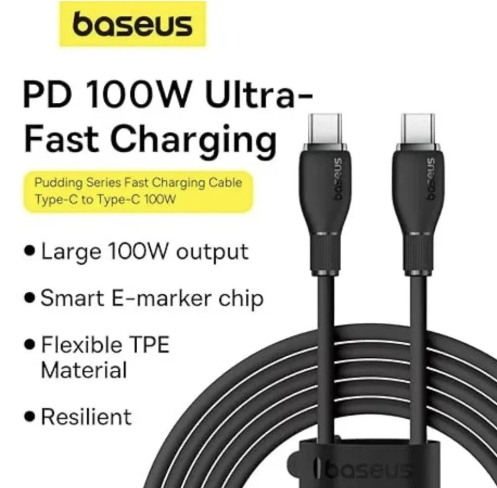 كيبل تايب سي الي تايب سي بيسوس - بطول 1.2 متر بقوة 100 واط - لون اسود 1