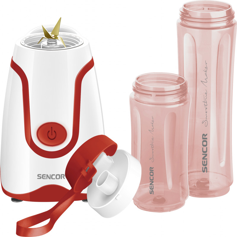 - زجاجتان عمليتان بمقاسين مثاليين: يأتي خلاط السموذي من سينكور مزوّداً بزجاجتين قابلتين للإزالة بسعتي 600 مل و300 مل، لتناسب احتياجاتك اليومية. امزجي مشروبك مباشرة في الزجاجة، ثم خذيها معك كزجاجة سفر أنيقة لتستمتعي بسموثي منعش أينما كنتِ.