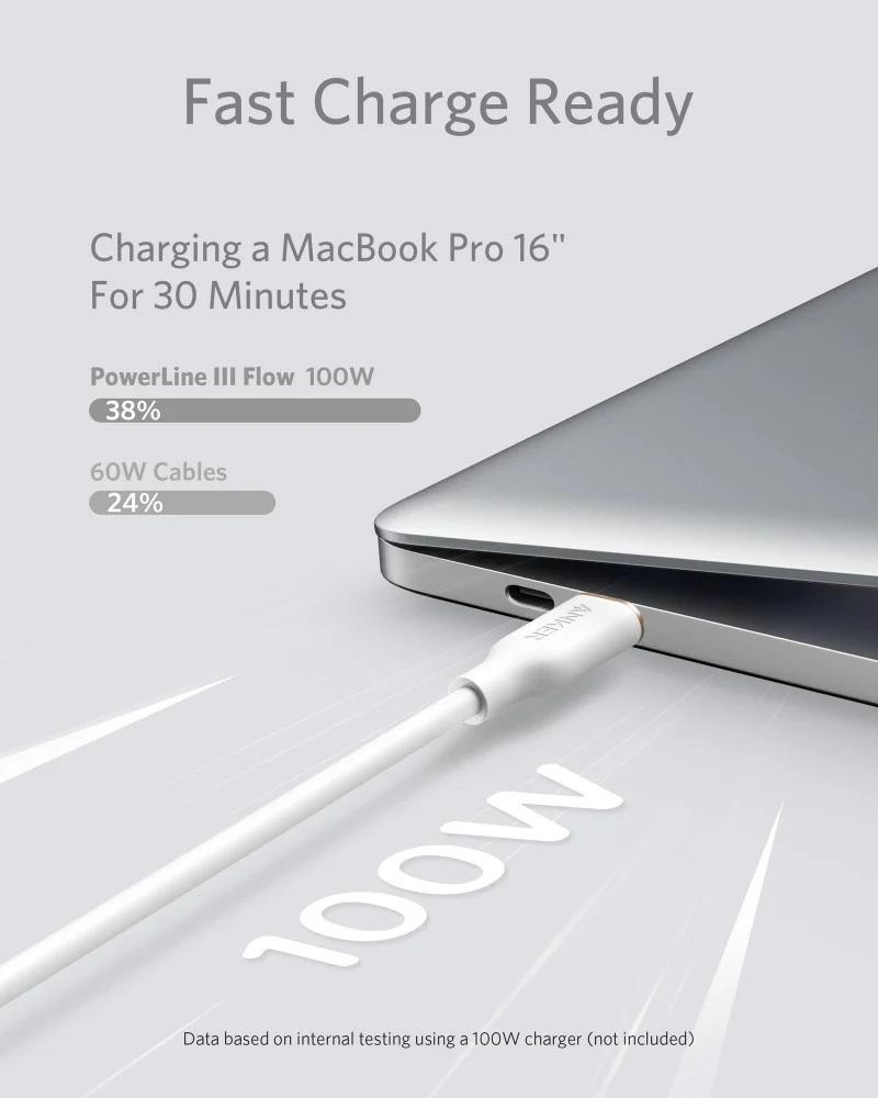 - شحن سريع بقوة تصل إلى 100 واط: يدعم سلك انكر تقنية الشحن السريع Power Delivery لشحن الأجهزة بسرعة وكفاءة، مما يجعله مثالياً للهواتف، التابلت، واللابتوبات.