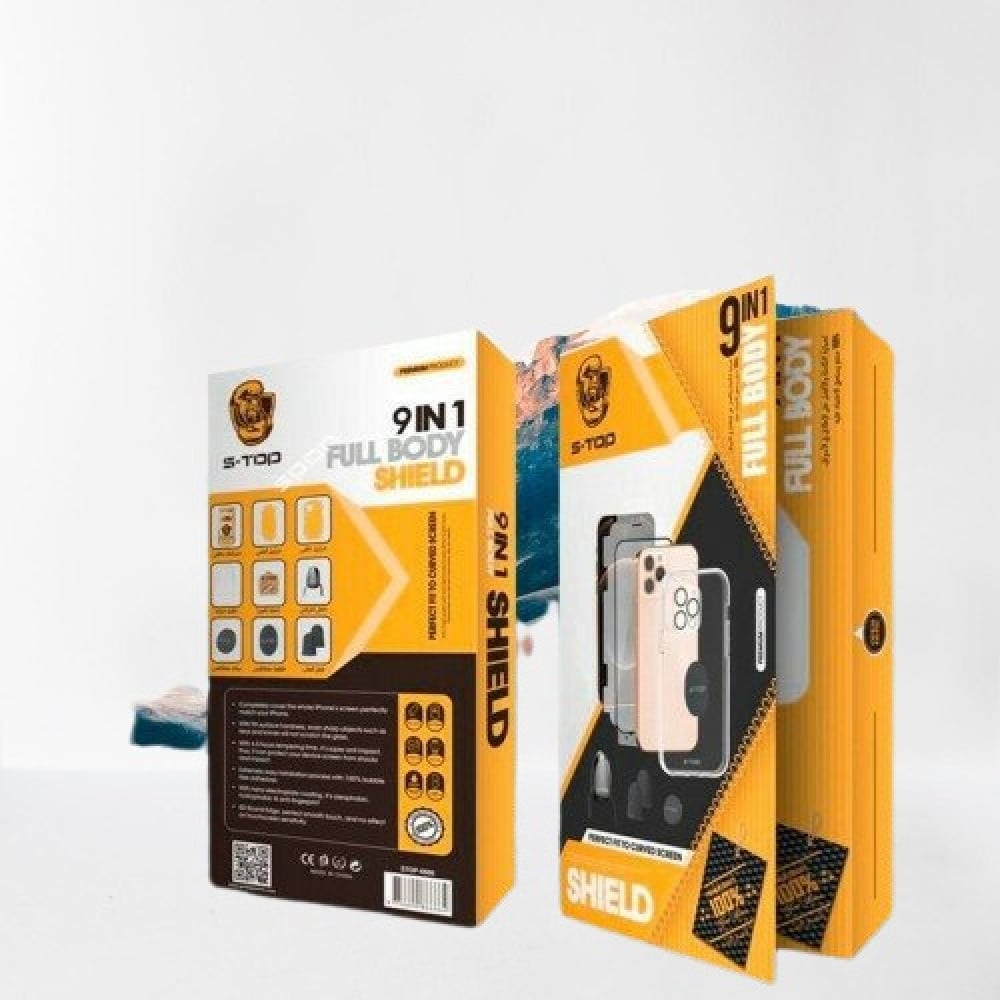 محتويات بكج حماية ايفون 14 برو s-top المتكاملة 9x1 :