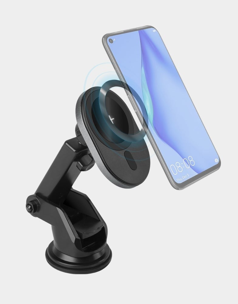 - تثبيت مغناطيسي آمن وذكي: تمتاز هذه القاعدة بسطح مغناطيسي يثبت الجوال تلقائياً بإحكام باستخدام تقنية MagSafe، لتبقى مطمئناً أثناء القيادة.